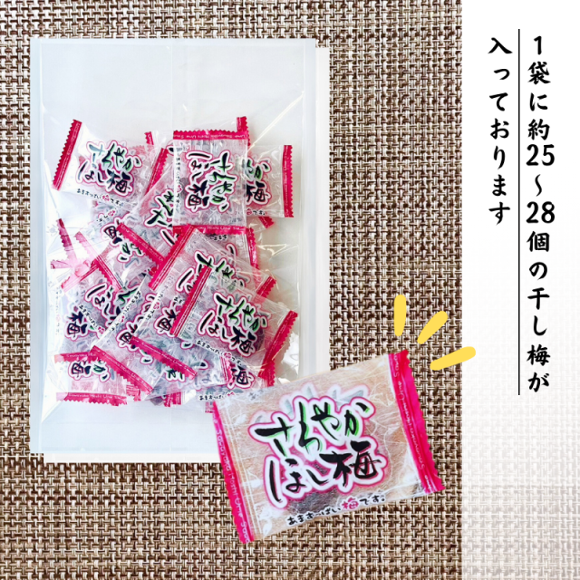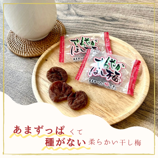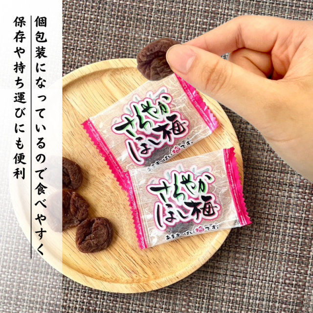 「あまずっぱい干し梅です。便利な個包装タイプで、食べやすく保存に持ち歩きに便利!